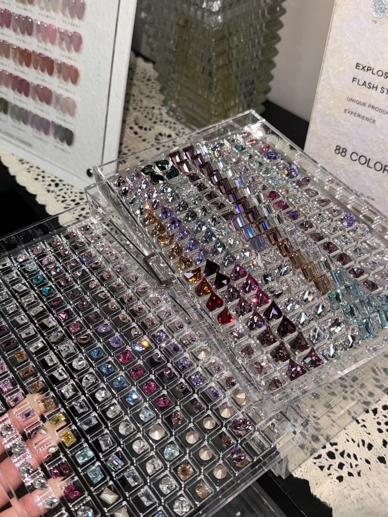 Each ring is designed with custom-cut crystal reflections, set in fine metalwork...