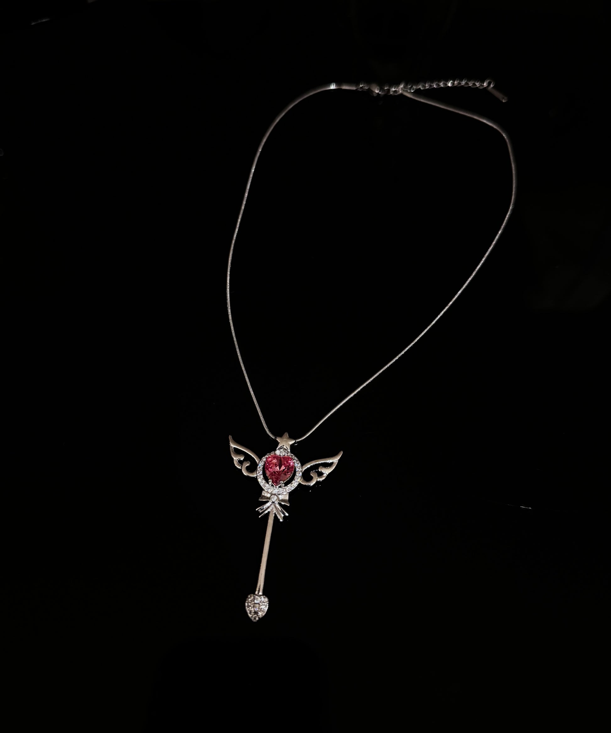 The 「Fallen Angel」 pendant features a crimson heart symbolizing intense passion, paired with an arrow and winged motif that evoke themes of freedom and destiny. This design reflects a powerful narrative of love that challenges divine boundaries—falling yet continually reigniting with fiery resilience. Crafted to embody both elegance and profound meaning, it is perfect for those who cherish stories of enduring love and strength.